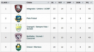 O time foi a 45 pontos em 23 jogos, contra 44 de Pato e Copagril.