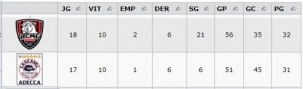 A ACMF está em quarto, um ponto à frente do Cascavel (32 a 31).