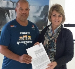 Olha quem esteve reunido com a secretária de Estado Fernanda Richa (Família e Desenvolvimento Social). E ele mesmo, o carateca Sebastião Galdino. Pudera. A Associação Mourãoense de Karatê garantiu R$ 100 mil dar continuidade ao projeto Karatê nas Escolas em quatro escolas municipais de Campo Mourão.