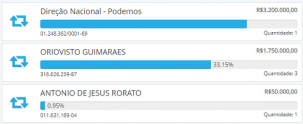 O sistema do TRE aponta doação de R$ 50 mil.