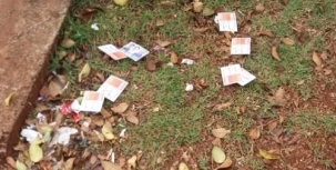 Não foi aquele derrame de santinhos de "forrar o asfalto", mas Campo Mourão amanheceu com materiais de campanha espalhados por todos os cantos. Inclusive em frente aos locais de votação. A foto é em frente à escola da Vila Urupês. O Ministério Público fez registros e encontrou até propaganda irregular, sem a devida identiricação.