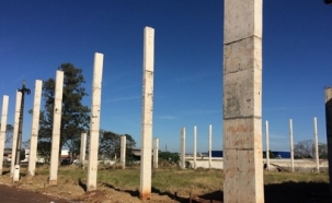 A obra, o Parque de Exposições, parou nos pilares de concreto.