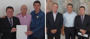 O deputado Márcio Nunes participou semana passada do evento em que o governo do Estado liberou R$ 22 milhões para projetos de 73 prefeituras. Pudera. Das liberações para Peabiru e Moreira Sales, cerca de R$ 50 mil para cada uma foram indicações de Nunes. O dinheiro é para compra de veículos. Nas fotos, o deputado com os prefeitos Rafael Bolacha (Moreira Sales) e Júlio Frare (Peabiru) e uma "participação" do governador Beto Richa.
