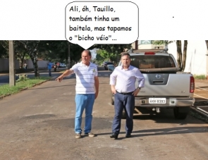 O prefeito Tauillo Tezelli foi sexta-feira dar uma conferida nos tapa-buracos feitos pela cidade. Junto com o secretário Luiz Carlos Malavazi (Obras) esteve na av. Goioerê, perto do colégio Unidade Polo. Tauillo disse que toda sexta à tarde pretende conferir os trabalhos da prefeitura. Segundo ele, a situação não está fácil e faltam recursos, mas a adminstração atua "dentro do possível".