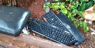 Teclado de computador - Vende-se. São três teclados, todos pretos. Molharam com a chuva de quinta-feira. Leva de brinde estofado para banco. Interessados procurar na praça São José, de frente para a av. Irmãos Pereira, centro de Campo Mourão.