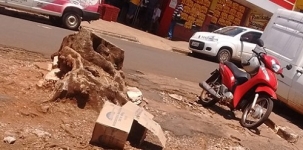 O prefeito Wilson Brarac disse iria esperar os troncos apodrecerem para não haver risco de estragar o asfalto na hora da retirada.