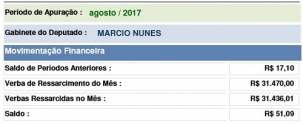 Saiu a prestação de contas dos deputados estaduais referente às despesas de gabinete de agosto. Cada parlamentar do Paraná tem direito a R$ 31.470 para bancar a estrutura. O mourãoense Márcio Nunes fechou o mês com R$ 31.436,01. Como tinham sobrado R$ 17,10 de julho, o gabinete iniciou setembro com R$ 51,09 em caixa. Olha aí, nove centavos além de uma "boa ideia"...