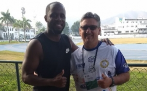 Reconheceu quem está ao lado do técnico Paulo Cesar Costa, da equipe de atletismo de Campo Mourão? É o tetracampeão mundial do salto em distância, o norte-americano Dwight Philips. A foto foi feita na base da Aeronáutica, no Rio de Janeiro, onde Paulinho participa de estágio internacional de atletismo. Ele foi convidada pela Federação Brasileira de Atletismo. Só "os tops" do atletismo nacional tiveram esse privilégio. A federação banca o curso, mas as despesas de viagem e de estadia na "cidade maravilhosa" é na base do "cada um por si".