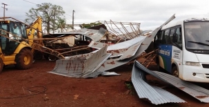 O temporal do final de semana também deixou prejuízos em Corumbataí do Sul. Por lá, quem levou a pior foi a prefeitura mesmo. O vento derrubou a cobertura metálica do pátio de máquinas. Telhas de zinco foram arrancadas e colunas de ferro caíram sobre caminhões, máquinas e ônibus da frota municipal.