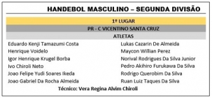 O colégio Santa Cruz, de Campo Mourão, conquistou no fim de semana o título de campeão do handebol-m da Divisião B dos Jogos Escolares da Juventude. Foi na categoria 15 a 17 anos, disputada em Brasília. Venceu na decisão uma escola da Paraíba, por 21 a 15.
