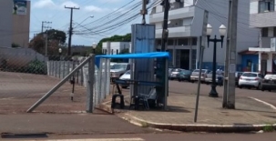 Vendedor ambulante arma lona pra se proteger do sol e da chuva. Isso na esquina da av. Irmãos Pereira com a rua Harrison José Borges.
