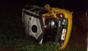 Lembra que semana passada uma viatura da Polícia Militar de Nova Cantu foi atingida por carro que furou a preferencial? Esta semana mais uma viatura do município se envolveu em acidente. Desta vez foi na rodovia que liga a cidade a Campina da Lagoa, quarta-feira à noite, quando chovia. O policial teria perdido o controle ao desviar de um cachorro e o veículo capotou. O soldado se feriu e foi hospitalizado em Campo Mourão.