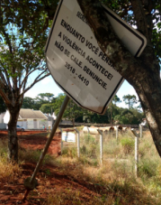 A placa ficava em frente à escola Parigot de Souza, na região do jardim Gutierrez. Ficava, porque agora apareceu assim, do outro lado da rua e encostada numa árvore.