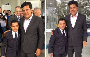 O mourãoense Magno Alves é conhecido por não perder a visita de autoridades e famosos a Campo Mourão. Tudo registrado em fotos. Nesta segunda-feira, na visita do ministro Mendonça Filho (Educação) ao Integrado não foi diferente. Detalhe: Magno não só fez pose ao lado do ministro, como arrastou Mendonça Filho para o local onde ele achou melhor para o clic. No primeiro tava muito congestionado. Ah, tá pensando o quê!...
