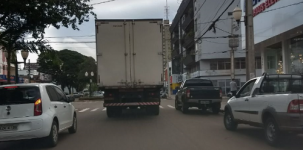 "Caminhão passa pela av. Capitão Índio Bandeira, nesta segunda-feira, em horário que não era de carga e descarga".