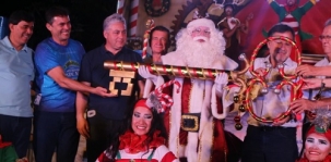 Olha aí a clássica foto do Papai Noel recebendo a chave da cidade. O "bom velhinho" chegou a Campo Mourão neste sábado numa megaprodução da Associação Sou Arte. Teve desfile, teve espetáculo, teve praça cheia de luzinhas e muuuuuuita gente pra assistir. Também teve discursos de políticos (é impressão ou teve umas vaiazinhas no meio?). Para quem gostou (ou pra quem não viu), anote aí: dia 21 o Sou Arte vai repetir o espetáculo.