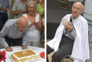 O professor Assabido Rhoden fez aniversário nesta segunda-feira: 91 anos. Comemorou lançando livro na Biblioteca Municipal. "Relatos da vida de um mestre" é o sexto livro de sua autoria. O lançamento incluiu bolo com a velinha dos 91 anos e "parabéns pra você". Também teve entrega de comenda do colégio Marechal Rondon. Integrante das academias mourãoenses de Letras e de Filosofia prestigiaram o evento. Teólogo e filósofo, Assabido é membro das duas.