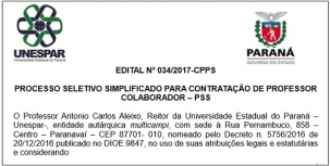 A Unespar abriu inscrições para contratação de 101 professores temporários através PSS.