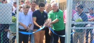 Foi inaugurada nesta quinta-feira a arena multiuso do colégio Vinícius de Moraes, no Cohapar. É segunda de quatro previstas para Campo Mourão. Uma já está pronta no conjunto Parigot de Souza e duas em fase de instalação no Parque do Lago e no colégio Marechal Rondon. O prefeito Tauillo Tezelli e o secretário de Estado Douglas Fabrício (Esporte e Turismo) participaram da solenidade ao lado do diretor da escola, Raoni de Assis.