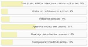 Vitória da alternativa "Apresentar uma rua sem buracos", com 36% da preferência dos internautas que votaram.