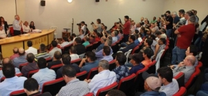 Auditório da Comcam lotado nesta quinta-feira para a tradicional audiência pública de apresentação das emendas do deputado federal Rubens Bueno. São mais de R$ 18 milhões, entre emendas individuais e coletivas, para 46 municípios. Sete prefeitos da região participaram, a começar pela presidente da Comcam, Angela Kraus (Farol). Os outros eram de Araruna, Barbosa Ferraz, Campo Mourão, Corumbataí do Sul, Goioerê e Nova Cantu.