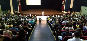 Teatro Municipal lotado na manhã desta quinta-feira.