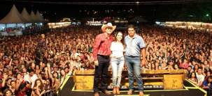 O show deste domingo na Expo-Sales, em Moreira Sales, foi com a dupla Fernando & Sorocaba, mas antes o prefeito Rafael Bolacha (de chapéu) foi ao palco para conferir como estava o público. E aí, o que é que achou? Foi gente ou não foi? A entrada era uma lata de óleo. No sábado a atração foi Guilherme & Santiago. A exposição termina nesta segunda-feira, com a banda Café Society.