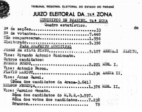 Teve um tempo no Brasil que ser o candidato a prefeito mais votado não significava, necessariamente, ganhar a eleição. Foi o que aconteceu em Peabiru, em 1976, com Rubens Bueno. Disputou a prefeitura pelo MDB, fez 2.221 votos, mas o eleito foi Jorge da Silva Pinto (Arena), com 2.107 votos (114 votos a menos). Na época, valia a soma dos votos dos partidos. O recorte acima mostra o resultado oficial e voltou a cena nesta quinta-feira, nas redes sociais.