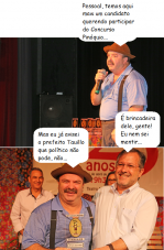 Os cliques são de domingo, no 25º Concurso Pinóquio de Causos e Mentiras, realizado no Teatro Municipal. O humorista Paulinho Mixaria foi o convidado especial. Na foto, ele recebe homenagem do prefeito Tauillo Tezelli (não vá ser maldoso e pensar que o prefeito foi premiado, hein?)...