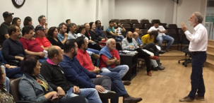 Dr Rosinha, presidente estadual do PT e pré-candidato a governador, sobre as dificuldades que os candidatos terão diante da crise institucional no País; durante visita a Campo Mourão, sábado.