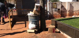 Dia das Mães no Cemitério Municipal. Podiam colocar o tambor de lixo do lado de fora ao invés de deixá-lo em frente a túmulos.