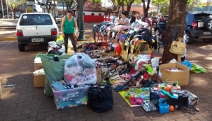 Alunos do colégio Santa Cruz estão promovendo bazar nos fundos da catedral São José. O objetivo é arrecadar dinheiro para ajudar nas despesas do time de handebol, que disputa campeonatos fora de Campo Mourão. A peça de roupa sai por R$ 3. Se levar duas paga-se R$ 5.