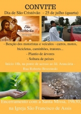 Haverá bênção com a imagem de São Cristóvão nesta quarta-feira (18h).