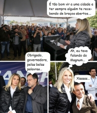 Cida Borghetti fez nesta sexta-feira a segunda visita a Campo Mourão desde que assumiu o governo do Estado. Desta vez foi à unidade da Sanepar, no Lar Paraná. Além do prefeito Tauillo Tezelli não podia faltar, é claro, o "recepcionista oficial" Magnum Alves...
