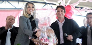 O prefeito Rogério Riguetti presenteou a governadora com uma cesta de produtos locais.