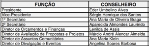 Foi publicado no Órgão Oficial a nova diretoria executiva do Conselho Municipal de Saúde de Campo Mourão. Éder Umbelino é o presidente, com Sérgio Henrique dos Santos de vice. A ex-presidente Lenilda de Assis agora é diretora de Orçamentos e Finanças. O ex-secretário de Saúde Márcio Alencar é diretor de Avaliação de Propostas e Projetos.