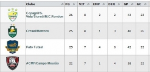 A ACMF fo a 22 pontos e ficou na quarta posição, apenas quatro atrás do líder Marechal Cândido Rondon.