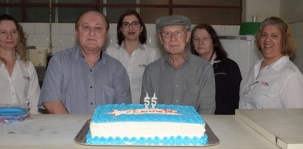 Sabe quem fez 55 anos nesta terça-feira? A Auto Peças Cometa. Um bolo foi servido entre os funcionários, com direito a pose dos irmãos proprietários Denir e Delordes Daleffe. A família veio de Santa Catarina e abriu o negócio no ramo de auto peças em Campo Mourão.