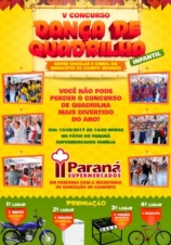 Acontece neste sábado (14h), no supemercado Paraná Família, o 5º Concurso de Dança de Quadrilha. Dez escolas e creches municipais se inscreveram, num total de 220 alunos com até cinco anos. "Objetivo é mostrar o trabalho das escolas", explica o empresário Rodrigo Machado da Luz.