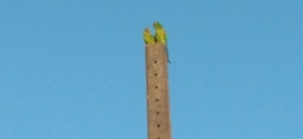 "Casal de maritacas sobre poste de energia, no final de tarde desta segunda-feira, no conjunto Capricórnio". Irineu Ricardo