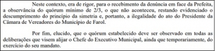 Liminar expedida nesta sexta-feira suspendeu a Comissão Processante instaurada pela Câmara de Farol.