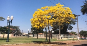 "Enquanto em Campo Mourão o passatempo é cortar árvores, a natureza responde com um protesto silencioso pra lá de colorido (praça Alvorada, no Lar Paraná".