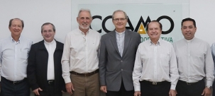 Olha só quem fez uma visitinha à Coamo nesta segunda-feira: o bispo coadjutor de Campo Mourão, d. Bruno Elizeu Versari. Junto com os padres Jurandir Coronado Aguilar e Adilson Naruishi, foi recepcionado pelo presidente José Aroldo Gallassini. O presidente, aliás, lembrou que o bispo tem familiares no distrito de Piquirivaí que são cooperados.