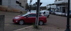 O que é isso? Um furgão branco estacionado no meio da rua? Calma, que as aparências enganam. Na verdade, o furgão é o único veículo estacionado corretamente. Todos os demais se aproveitaram da guia rebaixada de um antigo posto de combustíveis e pararam sobre a calçada. A foto é da rua Harrison José Borges, onde isso ocorre todo dia.