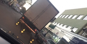 Quinta-feira, às 18h, na rua Harrison José Borges. No centro da cidade e em horário de pico, caminhão para no meio da rua, com direito a cones e tudo.