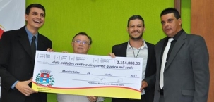 Durante a posse, o ex-prefeito interino Tiago Albano, entrou um checão simbólico de R$ 2,1 milhões a Rafael Bolacha. É o valor que a prefeitura tem em caixa, já incluindo R$ 140 mil devolvidos pela Câmara.