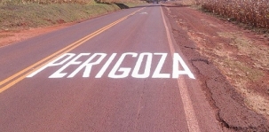 Olha só o que foi pintado na rodovia PR-082, entre Quinta do Sol e Fênix. Tem uma curva acentuada por ali que foi devidamente sinalizada. Só faltou uma revisãozinha da língua portuguesa. Escreveram perigosa com Z. Ai-aiai-aiai! Assim sendo, essa curva ficou ainda mais perigosa, afinal, além de acidentes, quem não prestar atenção pode desaprender...