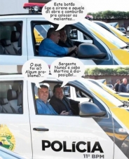 A entrega das novas viaturas ao 11.o BPM segue rendendo balãozinho. Pudera. O deputado Márcio Nunes e o vereador Edilson Martins resolveram conferir de perto como são os veículos, com direito a uma mexidinha no painel. Ah, só faltou inspecionar o camburão atrás...