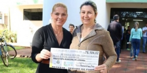 A presidente Amália Coltre fez até um cheque simbólico para entregar à prefeita Leila Amadei.