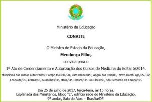 O Ministério da Educação fará na próxima terça-feira o primeiro ato de credenciamento e autorização de novos cursos de medicina.